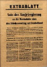 Bei ihren Vorschlägen zur Frage eines Friedensvertrages mit Deutschland und zur Bildung einer gesamtdeutschen Regierung ging die Sowjetregierung davon aus, dass die Lösung dieser Grundfragen große Bedeutung für die Festigung des Friedens in Europa besitzt und den Forderungen nach einer gerechten Haltung gegenüber den rechtmäßigen nationalen Interessen des deutschen Volkes entspricht. Die Dringlichkeit des Abschlusses eines Friedensvertrages mit Deutschland macht es notwendig, dass die Regierungen der Sowjetunion, der Vereinigten Staaten, Großbritanniens und Frankreichs unverzüglich Maßnahmen zu Vereinigung Deutschlands und zur Bildung einer gesamtdeutschen Regierung treffen.