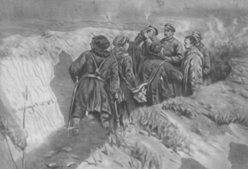 J.W. Stalin und K.J. Woroschilow im Schützengraben vor Zarizyn (1918)